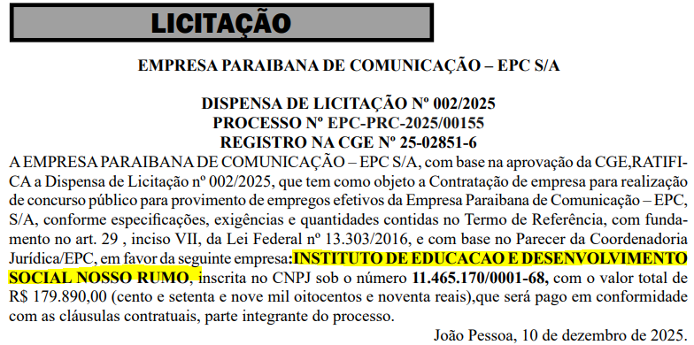 Aguardado desde 2024, o segundo concurso público da Empresa Paraibana de Comunicação (EPC) volta ao radar com a definição da banca organizadora!