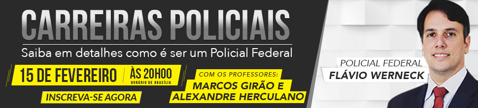 O aulão será online, ao vivo e gratuito e irá acontecer no dia 15/02, às 20h. O evento contará com a presença do Policial Federal Flávio Werneck, dos professores Marcos Girão e Alexandre Herculano e da Jornalista Thaís Mendes.