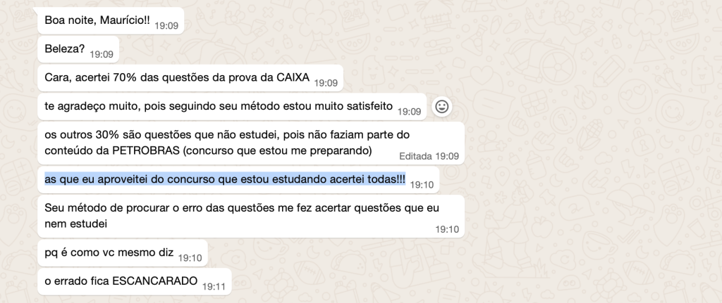 Mas foi aplicando um método específico — baseado em resolução diária de questões, revisão ativa e técnica de eliminação — que vi um aluno alcançar desempenho máximo em baterias completas de questões.