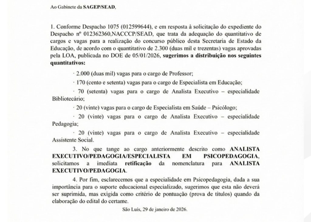 A informação consta em despacho enviado para a Secretaria de Estado da Administração do Maranhão, veja: