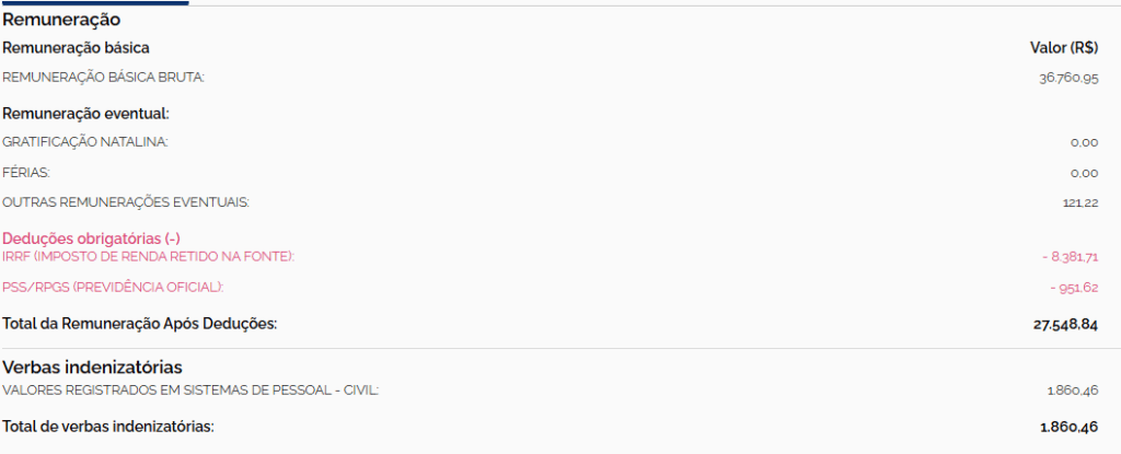 Para exemplificar ainda melhor, trouxemos abaixo o valor real recebido por um servidor admitido no último concurso (2013). Conforme o detalhamento, o salário após os descontos obrigatórios é de R$ 27,5 mil: