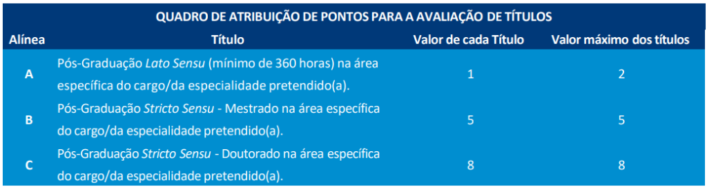 - Avaliação de Títulos – apenas para nível superior, de caráter somente classificatório