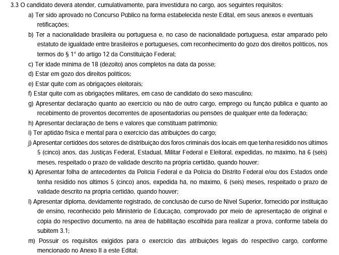 De acordo com o edital do concurso ALESC, o candidato deverá possuir os requisitos contidos no item 3.3, além dos elencados abaixo: