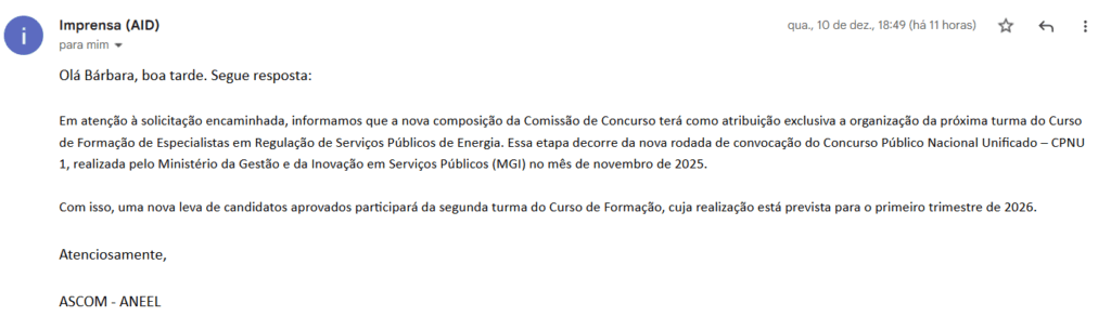 Com essa nova rodada de convocações, haverá uma segunda turma do curso de formação, prevista para ocorrer no primeiro trimestre de 2026.