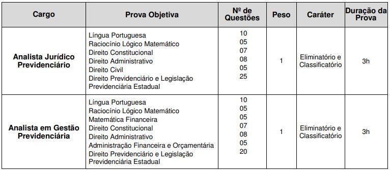 Com duração de 3h30, a prova objetiva, de caráter eliminatório e classificatório, foi composta de 120 questões com julgamento do tipo CERTO ou ERRADO, conforme listado abaixo: