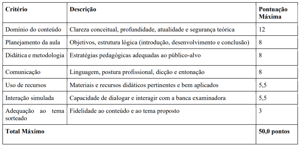 A etapa da Prova Didática consiste em o candidato ministrar uma aula dentro da perspectiva dos temas que ficarão disponíveis na convocação da etapa do cargo pleiteado.