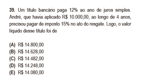 Ao final da operação, o imposto deve ser calculado sobre o rendimento, e não, sobre o montante para alcançarmos o gabarito oficial, porém, isso não é dito explicitamente no enunciado. Embora a legislação tributária diga que impostos devam incidir sobre o rendimento, deve-se lembrar que a legislação tributária não faz parte do conteúdo programático.