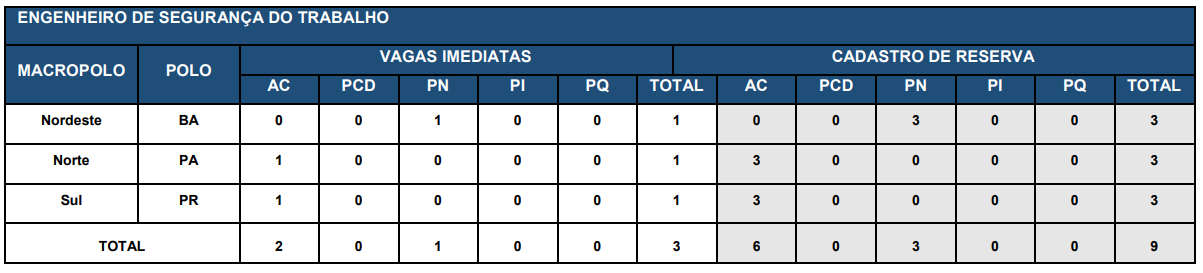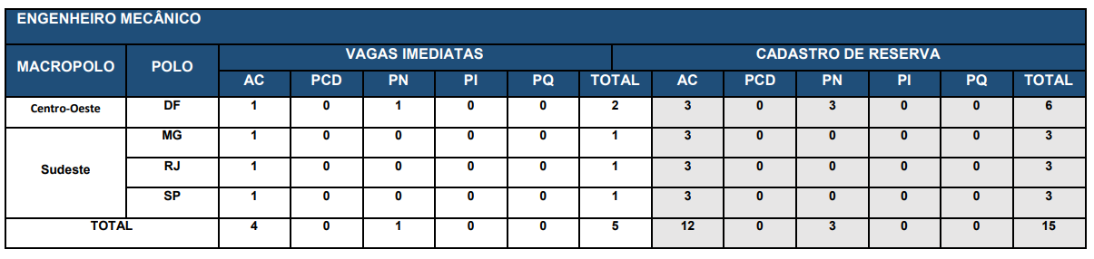 | Cargo | Total de vagas |