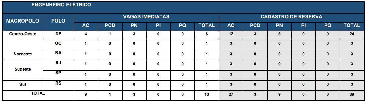 | Engenheiro Eletricista | 13 + 39 CR |