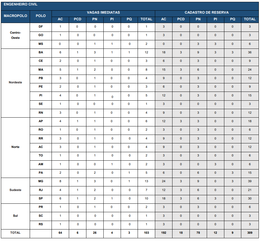 As vagas do novo edital da Caixa são distribuídas entre todas as regiões do país (Centro-Oeste, Sudeste, Sul, Norte e Nordeste), além de abranger diversos municípios, como São Paulo, Minas Gerais, Bahia, Paraná, Ceará e Amazonas.