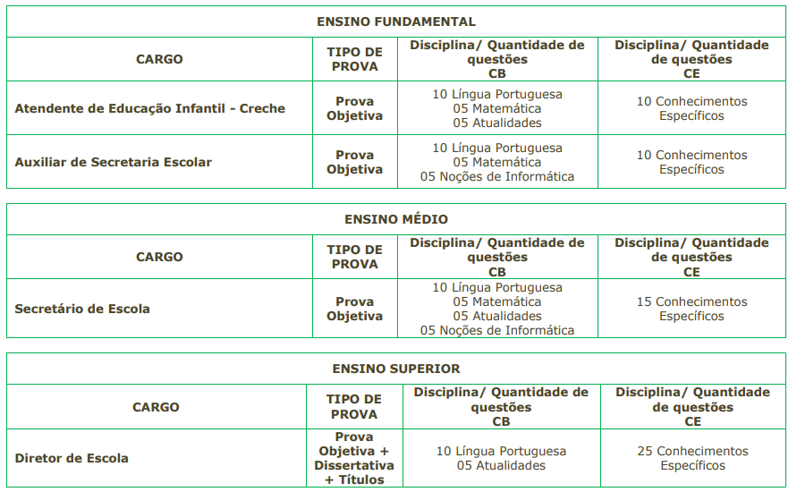 O concurso público constará das seguintes provas e respectivo número de questões:
