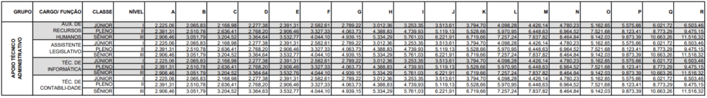 - Salário inicial: R$ 1.894,97 a R$ 6.711,07