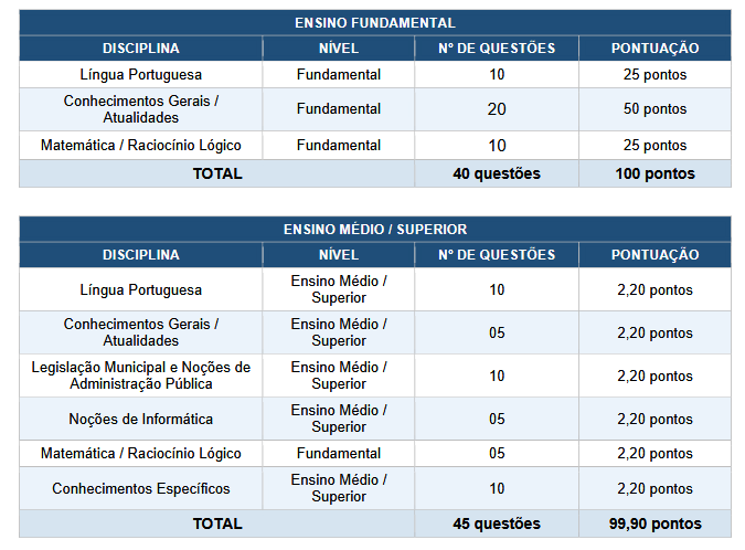 - a) Prova Objetiva: de caráter eliminatório e classificatório, aplicada a todos os cargos;