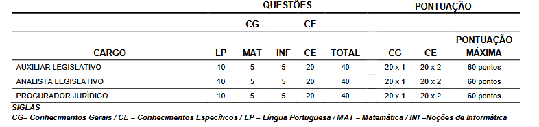 | Analista Legislativo | CR | R$ 5.340,59 | Ensino Superior (qualquer área) |