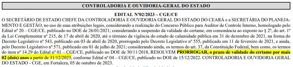 De acordo com a legislação, o ingresso nesses novos cargos deverá ocorrer exclusivamente por concurso público de provas e títulos, o que reforça o cenário favorável para a abertura de um novo edital da Controladoria e Ouvidoria-Geral do Ceará nos próximos meses.