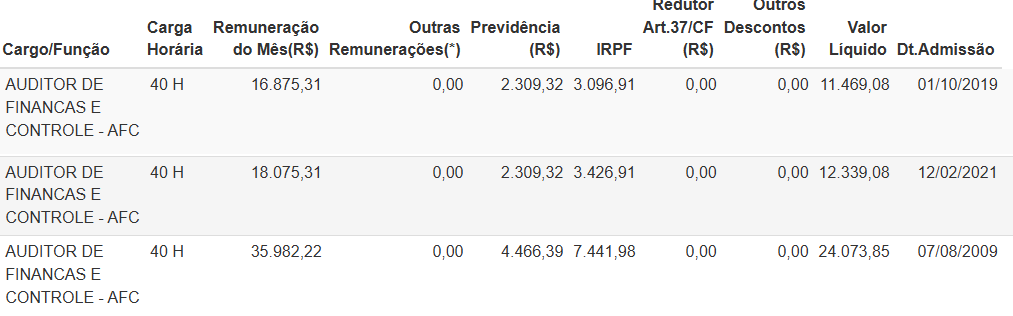 Para exemplificar ainda melhor, trouxemos abaixo o valor real recebido por servidores ativos no cargo: