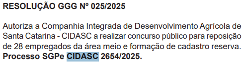 - Últimos editais: CIDASC 2024 | CIDASC 2022