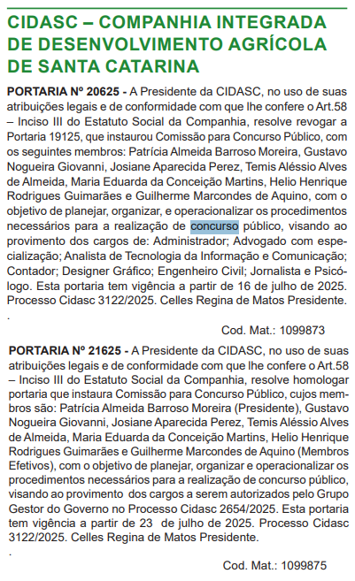 - Últimos editais: CIDASC 2024 | CIDASC 2022