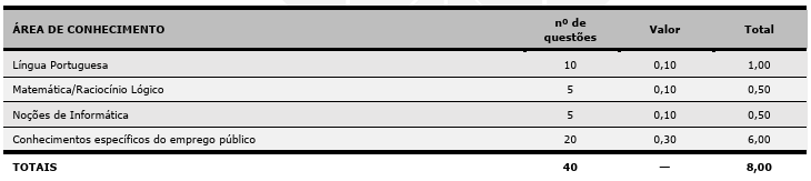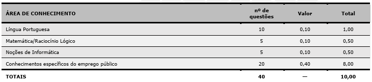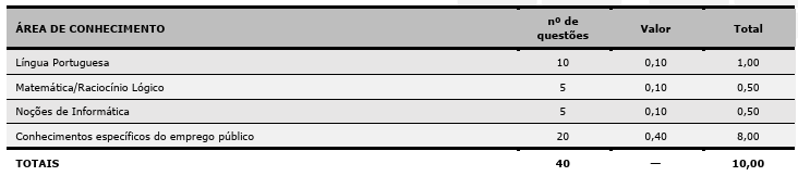- Prova objetiva, de caráter classificatório e eliminatório, para todos os cargos; e
