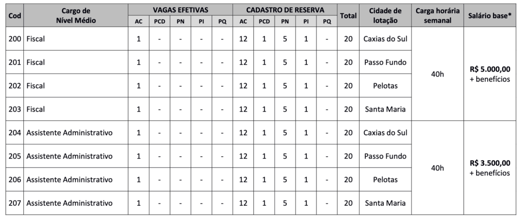 São 8 vagas imediatas mais 152 para formação de cadastro de reserva para o cargo de Fiscal e Agente Administrativo.