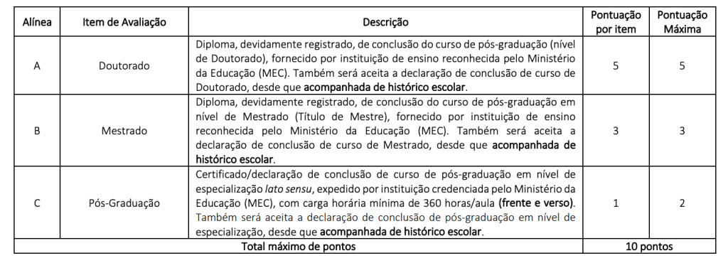 - análise de títulos – somente cargos de nível superior.