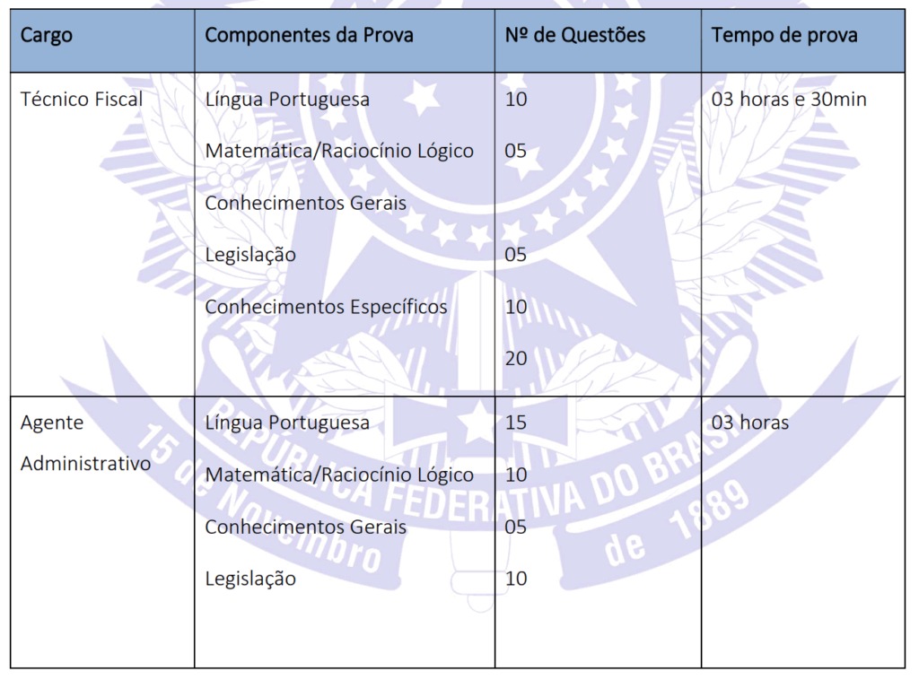 - Cargo: Técnico Fiscal e Agente Administrativo