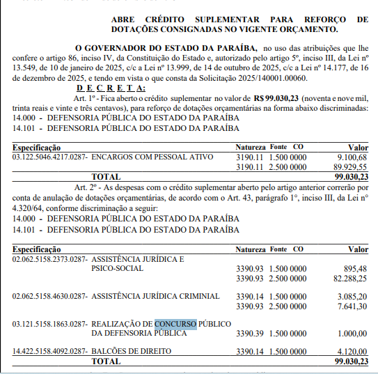Concurso previsto no orçamento para 2026