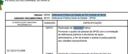 Consta no orçamento da Defensoria Pública do Rio Grande do Norte (DPE RN) a previsão do primeiro concurso público para servidores.