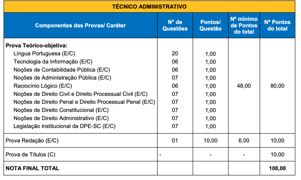 b) Para o cargo Técnico Administrativo, de 80 (oitenta) questões teórico-objetiva e 1 (uma) redação.