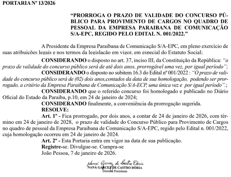 Aguardado desde 2024, o segundo concurso público da Empresa Paraibana de Comunicação (EPC) volta ao radar com a contratação da banca organizadora!