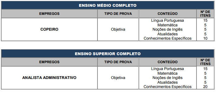 Já conforme o Termo de Referência, serão aplicadas apenas duas etapas para os cargos de nível superior. Veja: