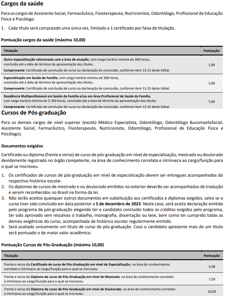 - Prova de Título – de caráter classificatório, para os cargos de nível superior.