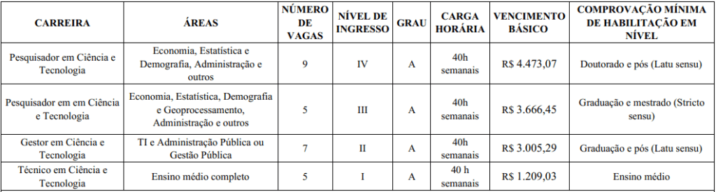 Com a organizadora contratada, o edital já pode ser publicado a qualquer momento. Lembrando que serão ofertadas 26 vagas para os cargos de Pesquisador, Gestor e Técnico em Ciências e Tecnologia.