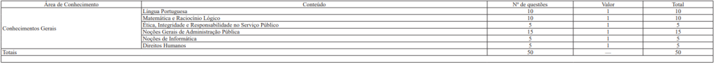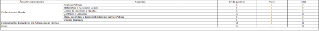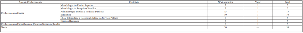 Composição da Prova Objetiva para o cargo de Pesquisador em Ciências Aplicadas e Políticas Públicas