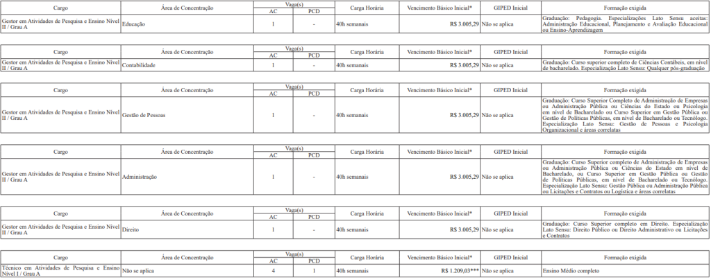 O concurso oferece 26 vagas para os cargos de Pesquisador em Ciências Aplicadas e Políticas Públicas, Gestor em Atividades de Pesquisa e Ensino e Técnico em Atividades de Pesquisa e Ensino.