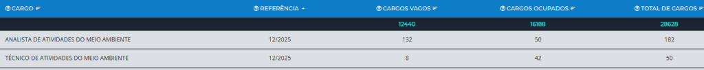 - Cargos: Analista e Técnico de Atividades do Meio Ambiente