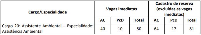 | Assistente Ambiental (Nível Médio) | 50 | 75 | 125 | R$ 4.094,56 |