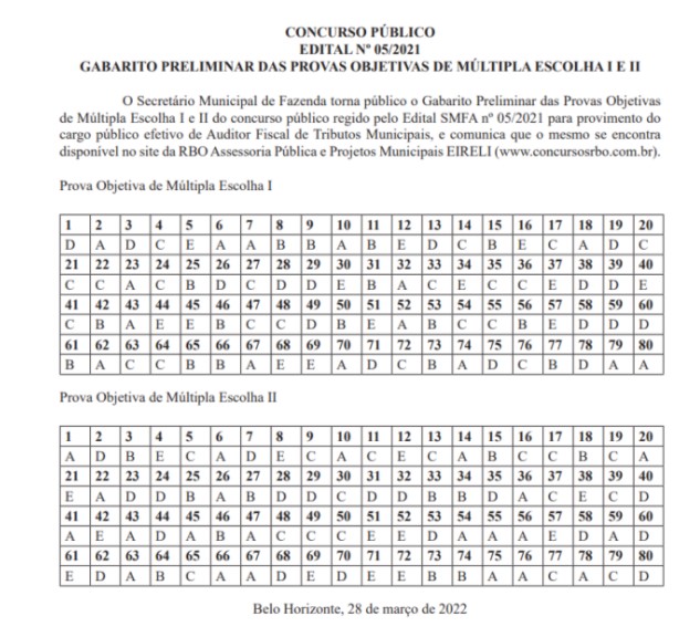 O concurso ISS BH, ao cargo de Auditor Fiscal, teve suas provas aplicadas no último final de semana (26 e 27 de maço). Com isso, já estão disponíveis para consulta os gabaritos preliminares da referida etapa.