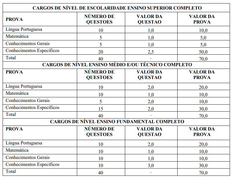 - Provas objetivas, para todos os cargos;