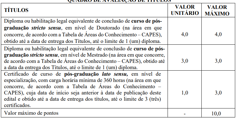 - Prova de títulos, para cargos de nível superior.