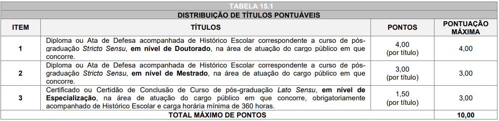 Os Títulos serão avaliados na escala de 0 a 10 pontos, sendo aceitos apenas os títulos abaixo relacionados: