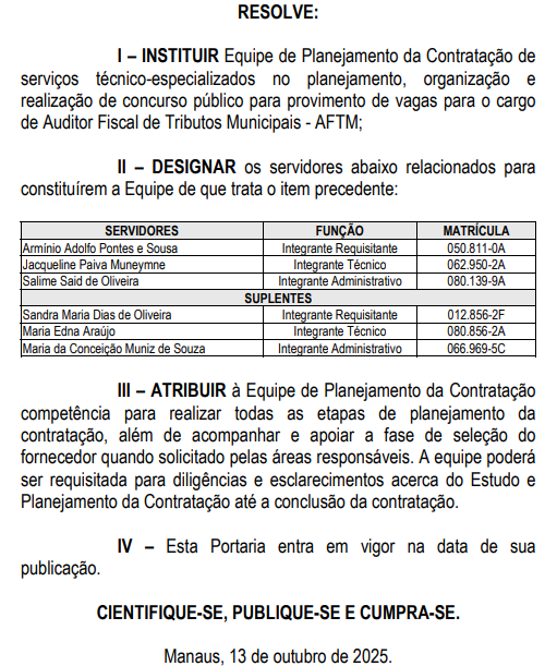 Novo edital do concurso ISS Manaus ofertará 10 vagas + 60 CR e iniciais de até R$ 24 mil