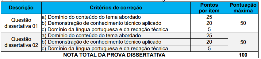 Para a Prova Dissertativa é atribuída nota de 0 a 100 pontos, sendo que a cada questão será atribuído até 50 pontos.