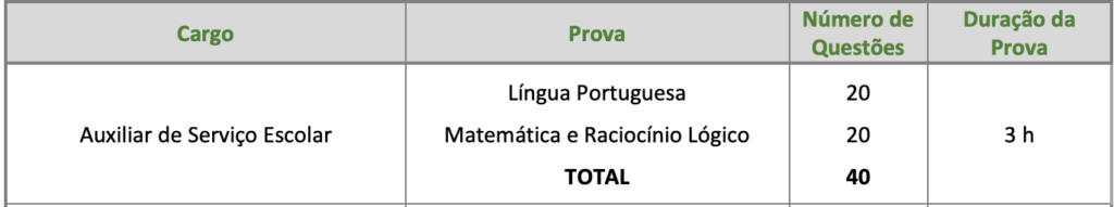 Para o cargo de Auxiliar de Serviço Escolar será considerado habilitado na Prova Objetiva o candidato que obtiver pontuação igual ou superior a 50 (cinquenta).