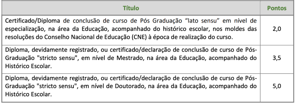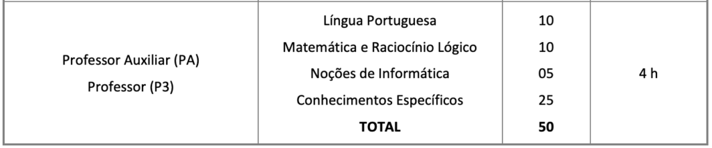 Para os cargos de Professor Auxiliar (PA) e Professor (P3) – Ensino Fundamental, será considerado