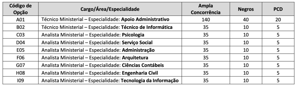 | Técnico Ministerial – Especialidade: Técnico de Informática | 1+CR | R$ 5.861,38 |