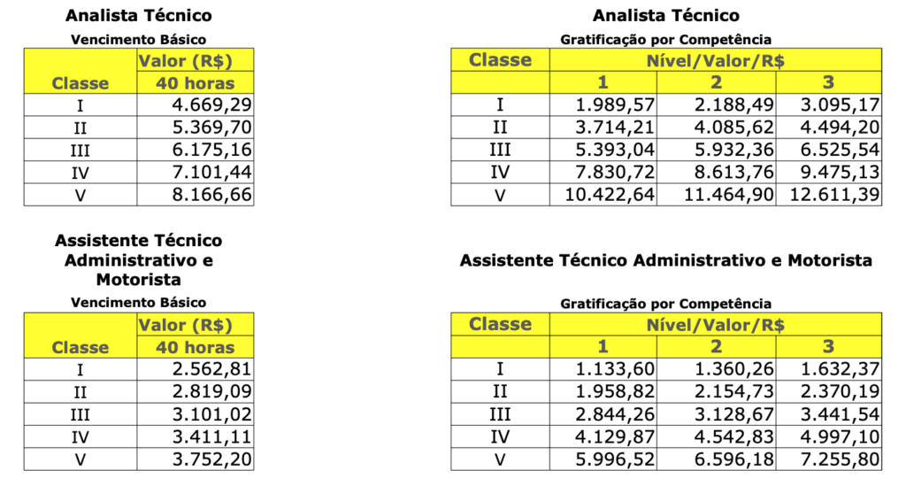 - Assistente Técnico-Administrativo: R$ 3.416,22; e