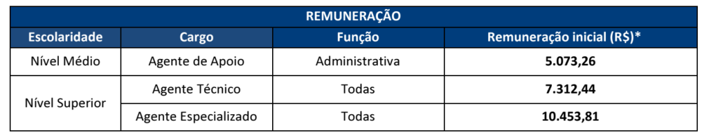 Confira abaixo os valores iniciais de cada cargo:
