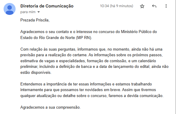 Por conta disso, o time de jornalismo do Estratégia Concursos entrou em contato, nesta terça-feira, 01 de julho, com os servidores da Diretoria de Comunicação do MP RN para saber os próximos passos para a realização da seleção.