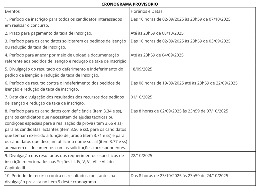 Os interessados devem realizar as inscrições no período de 02 de setembro a 07 de outubro, no site da banca organizadora, VUNESP. A taxa é no valor de R$ 197,00.